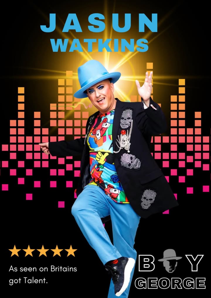This Saturday night at 9pm, we’ve got the one and only Jasun Watkins as Boy George — bringing all the colour, charisma, and classics you know and love! 🎤🎶
