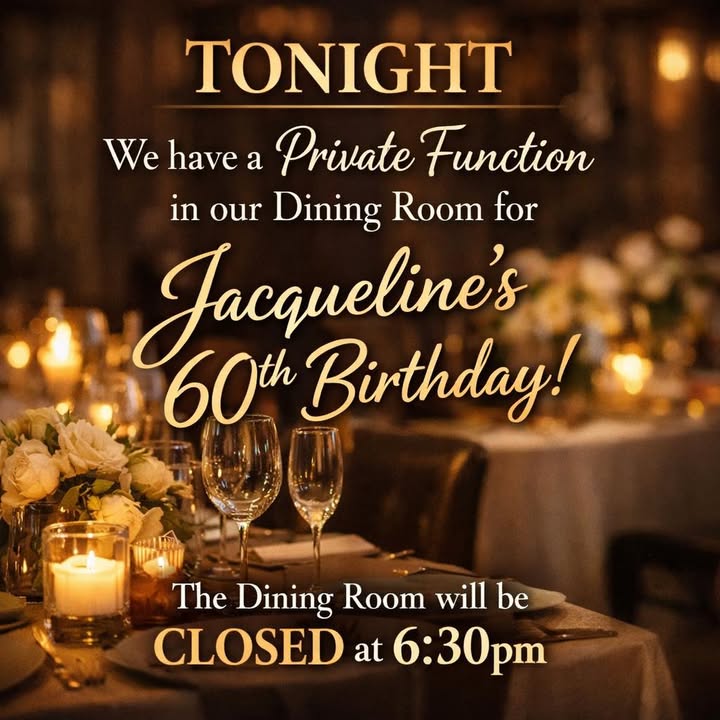 Our dining area will be closed from 6.30pm as we host a very special private function 🎉