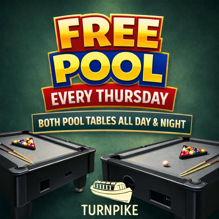#FreePoolDay #PubLife #MidweekVibes #EatDrinkPlay #TheTurnpike #GoodTimes