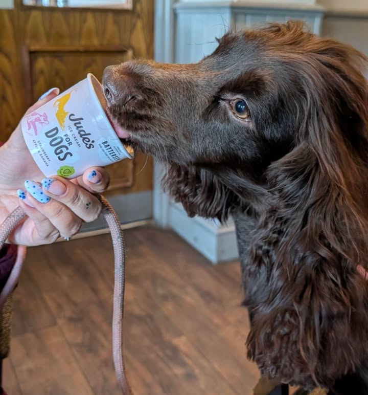 Introducing something paw-some at The Turnpike… Jude’s Ice Cream for Dogs is now here 🐶🍦 We are now official stockists of Jude’s Ice Cream for dogs, available behind the bar for just £2.95 a pot. And judging by Frankie’s reaction, it’s definitely a hit ❤️ We absolutely love welcoming your four-legged friends to The Turnpike, and it’s always lovely to see so many fur babies coming along with their humans. We know they’re part of the family, so we want to make sure they get a little treat too. This is just the beginning as well, because we’ll be adding even more dog-friendly items to their menu very soon. So next time you pop in, don’t forget to ask at the bar and treat your pup to something special. Keep your eyes peeled for more updates… your dogs are going to love what’s coming next 🐾 #TheTurnpike #DogFriendlyPub #JudesIceCreamForDogs #DogTreats #FurBabiesWelcome #PubDogs #Middlewich #DogFriendly #TreatYourDog #TurnpikePups