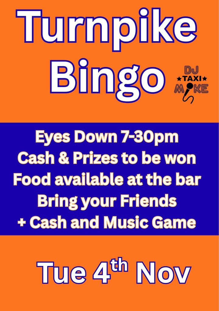 🎉 It’s TUESDAY… and you know what that means! 👀 The legendary Bingo Night with DJ Taxi Mike is back at 7.30pm! 🎱 Bring your lucky charms, your loudest cheers, and your best bingo banter — it’s always a night full of laughs, prizes, and that unbeatable Turnpike energy! 🍻💃 Grab a bite before eyes down — our 2 for £12.49 meals are served all day! 😋 #BingoNight #DJTaxiMike #TurnpikeTuesdays #MiddlewichEvents #PubFun #PunchPubs #FullHouseEnergy